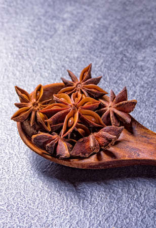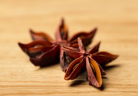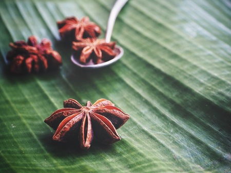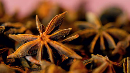Spices. Anise stars photo. Intentionally blurred lens focus effect.