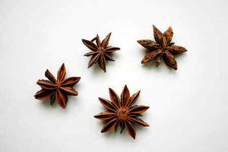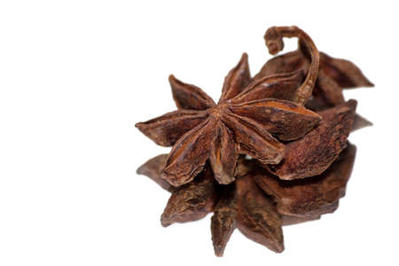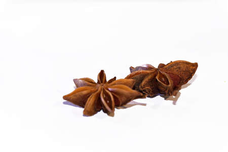 Chinese fragrant spice on white background - isolated anise star close-up view, spice used for making hot mulled wine. Decorative organic decoration.