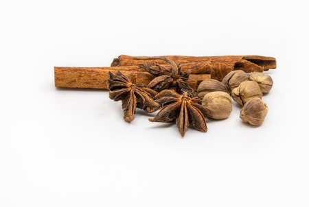 Cinnamon sticks and anise seeds. Good spices for digestions with white background.Health diet