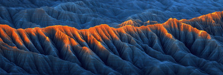 Dramatic Blue and Orange Desert Landscape Sunset Golden Hour Texture Hills sky view wild arid image