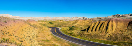 Fascinating colorful hills along the road leading through Badlands National Park, USA
