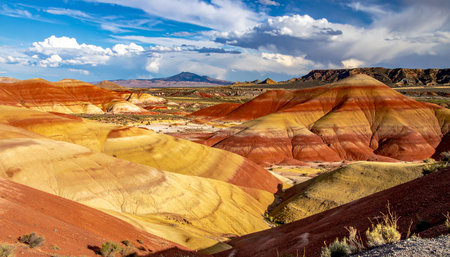Panoramic views of the arid and colorful landscape of Painted Hills