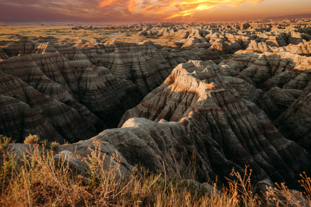 Sunset view of Badlands National Park, South Dakota, USA