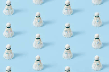 beautiful pattern of upside down professional badminton feathers on a bright blue background