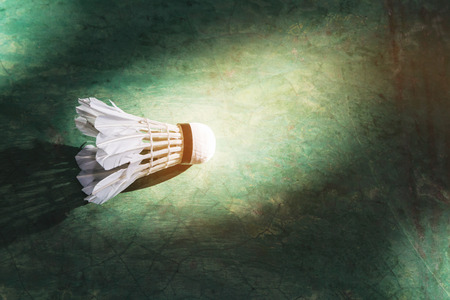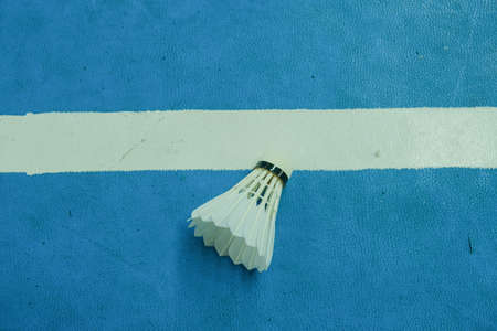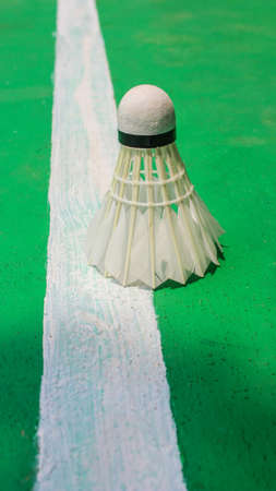 Badminton shuttlecock on badminton court with white line