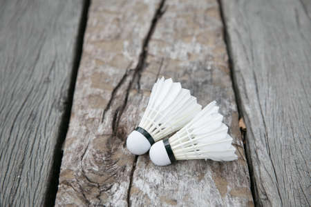 Shuttlecock for badminton on wooden background