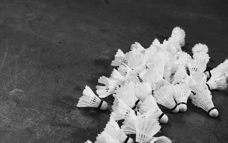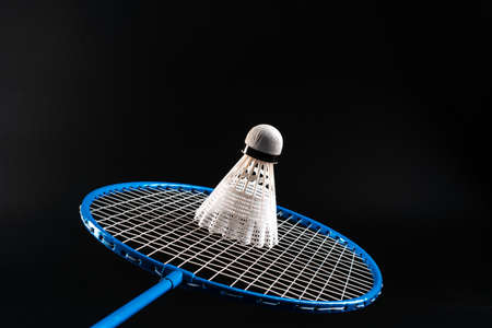 Badminton sport equipment on dark black background