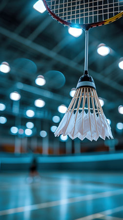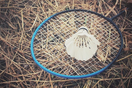 shuttlecock on badminton racket Soft-focus image