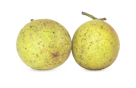 fresh sapodilla fruits on old wooden background. tropical fruits concept