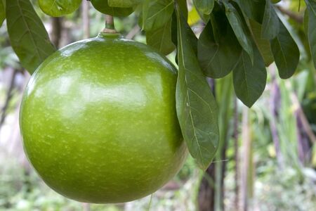 Close up of Calabash Fruit on Crescentia Cujete tree