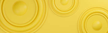 Many yellow speaker loudspeaker on yellow background.,3d model and illustration.