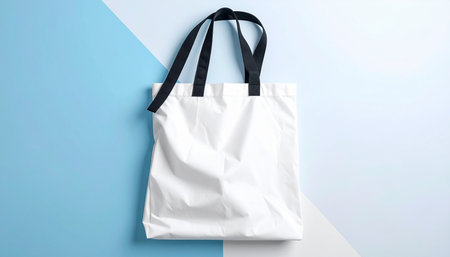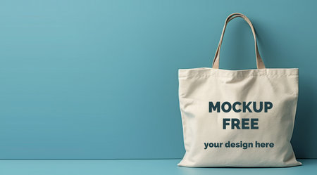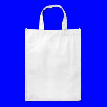 Tote bag fabric cloth shopping sack mockup isolated on blue background.