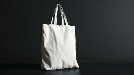 Blank craft bag mockup, mockup of white paper shopping bag with handles on dark background.
