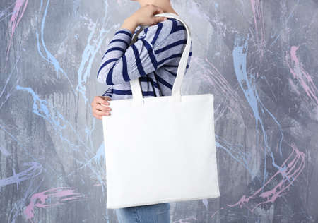 Blank Eco shopping bag made of fabric or tote bag fabric cloth shopping sack. Concept of ecology or environment protection