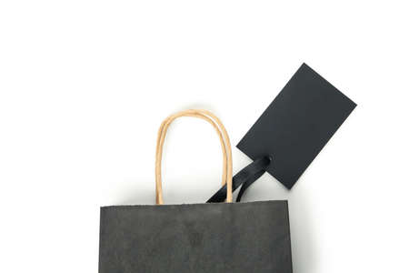 Mock Up Black Paper Bag on White Background . Concept Sale