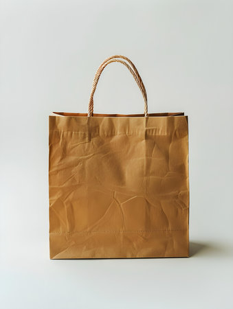 Full crumpled disposable bag of brown kraft paper on a white background. Copy, empty space for text.