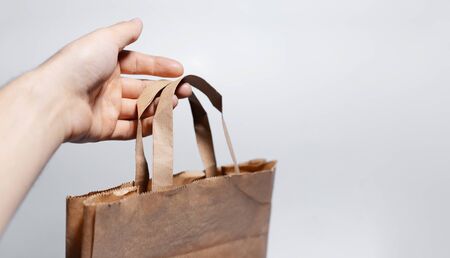 Blank brown paper carrier bag for lunch, with copy space for your text