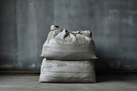 Generative AI : Dirty big bag and white alumina ball on the floor