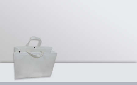 Blank craft bag mockup, mockup of white paper shopping bag with handles on dark background.
