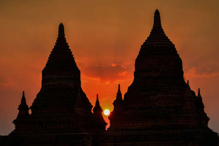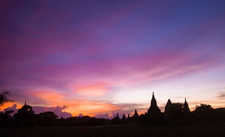 Sunset at Ancient Temples in Bagan, Myanmar,Silluate