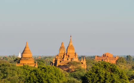 Old pagodas at morning with warm sunlight Bagan Myanmar
