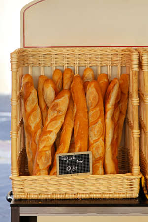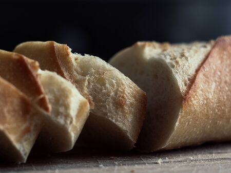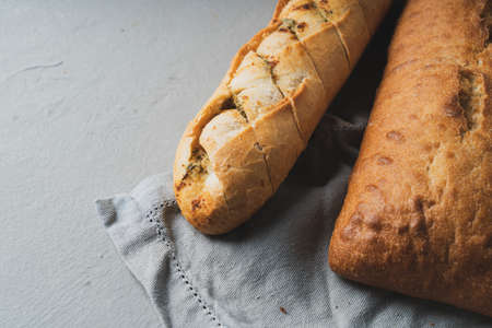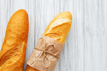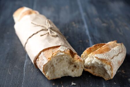 Homemade baguettes for healthy breakfast. Baguettes from the bakery. Pieces of baguette.