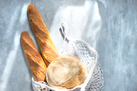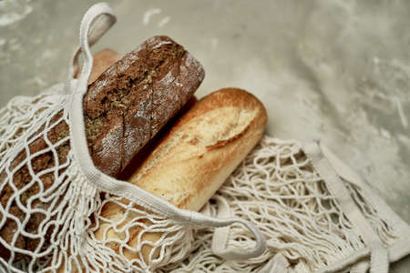 Replacing plastic bags. Taking care of the environment. Simple and delicious country bread. Simple meal.