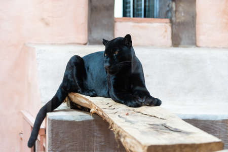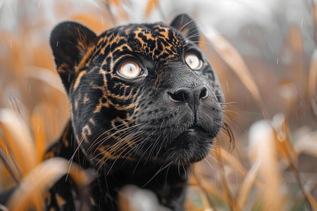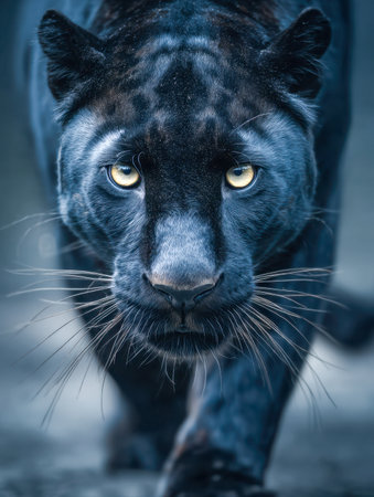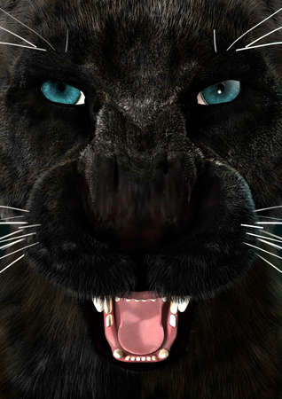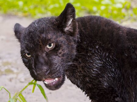 Portrait of the black panther, wild cat looking straight to the camera. Silent killer. Scary look.