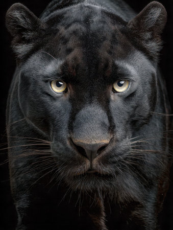 Close-up portrait of a black jaguar. Dark, intense, and majestic.