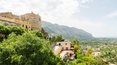 Landscape and View at medieval arab castle of Castellaccio near Monreale Palermo on the italian island of Sicily in May