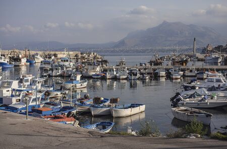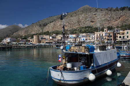 evocative image of fishing boats moored in the harbor in a small fishing village in Sicily, Italy