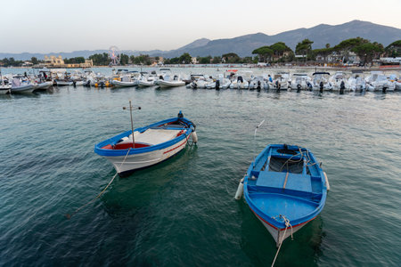 Beautiful Sunset Landscape Showing Boats Moored in Porticello Port in Sicily