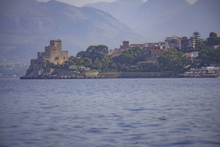 Sicilian Coastline in the Evening. Deep blue sea. Lovely water at Bagheria near Palermo in Italy at the Mediterranean sea
