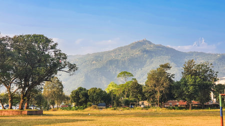 Beautiful view of Pokhara city on a Sunny spring day, Nepal.