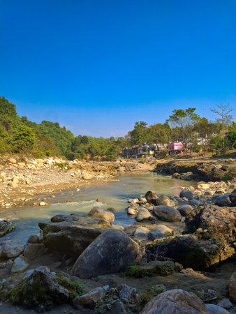 Peaceful Winter Morning Landscape at Song River, Uttarakhand