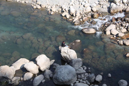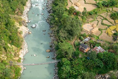 Beautiful mountain river in Himalayas. Nepal. top view.