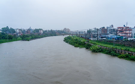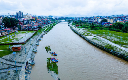 Aerial view of Bagmati river in Kathmandu, Nepal.