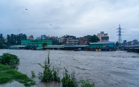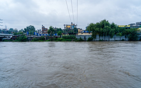 The Bagmati River flooded and affected the riverbanks and homes during heavy rainfall in Kathmandu, Nepal