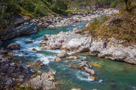River Langtang Khola. Scene near Bamboo, Nepal.