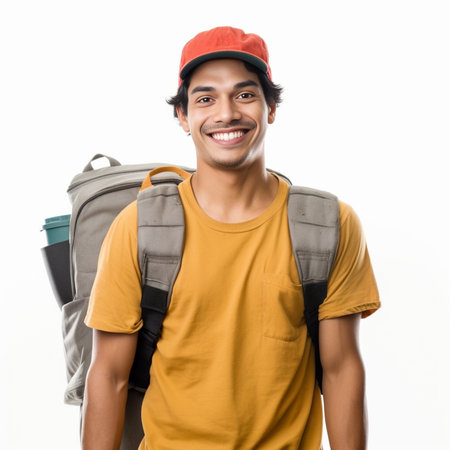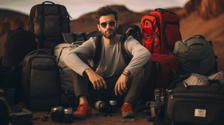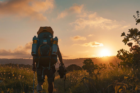 A man wearing a backpack on his back, standing in an outdoor setting. He ready appears for a journey or adventure, with the backpack fully loaded and secured. The man's body language suggests he is prepared for the challenges ahead.