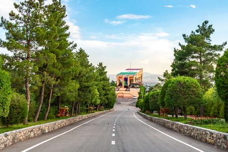 Dushanbe Victory Park Pobedy Picturesque Breathtaking Cable Car Building View on a Sunset Blue Sky Day