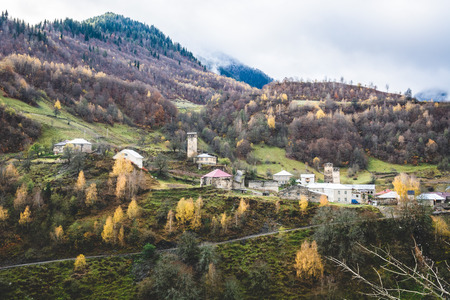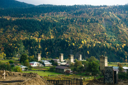 Picturesque scenery of Mestia and Svan towers, Georgia. Beautiful view