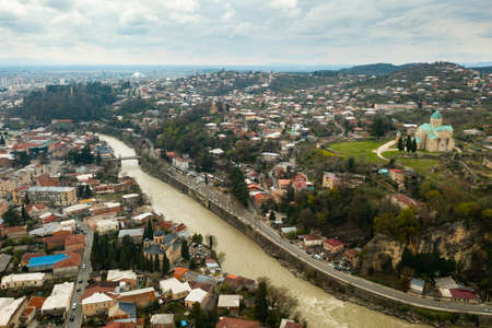 View from drone of Georgian town Kutaisi