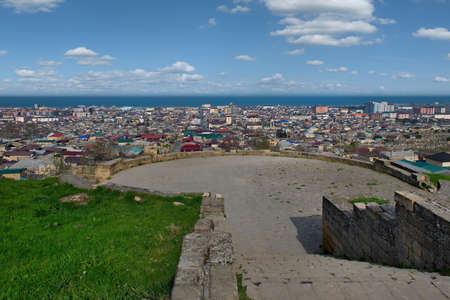 Derbent. Russia. April 09, 2021. Republic of Dagestan. View of the ancient city with a thousand-year history from the pre-Arab fortress of Naryn-Kara. The city of Derbent was founded in 438 AD.
