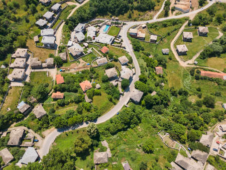 Aerial view of Village of Leshten with Authentic nineteenth century houses, Blagoevgrad Region, Bulgaria