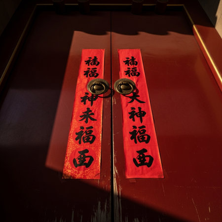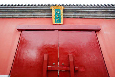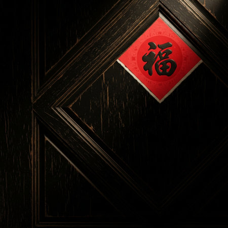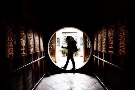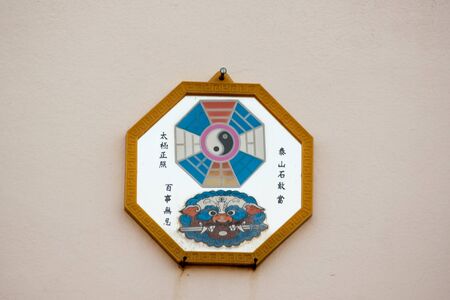 Stylized chinese characters made into a round vietnamese symbol for blessings like happiness, luck and longevity in front of a temple in Hoi An, Vietnam