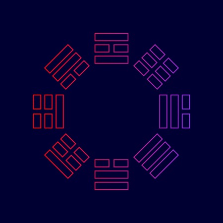 Bagua sign. Vector. Line icon with gradient from red to violet colors on dark blue background.