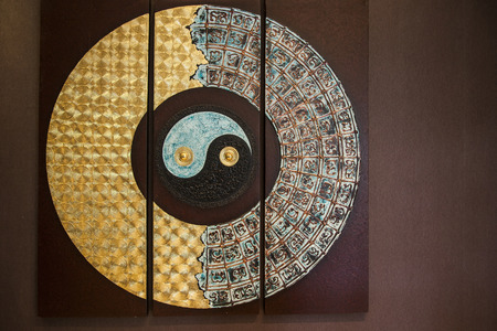Stone of Yin-Yang symbol in Rongkhun Temple Chiangrai, Thailand.