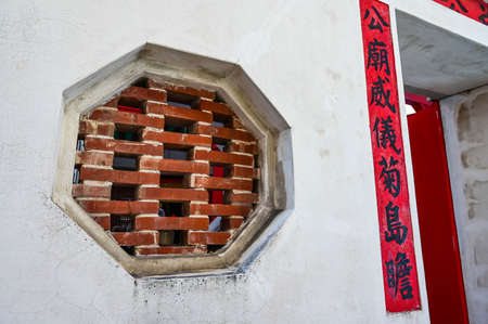 Penghu County, Taiwan-AUG 09, 2020: Chinese style tile window close-up.