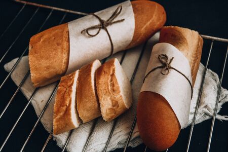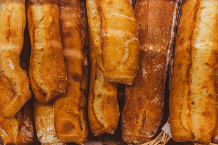 Freshly baked baguettes made by organic wheat flour, sugar, butter and milk that ready for sell.